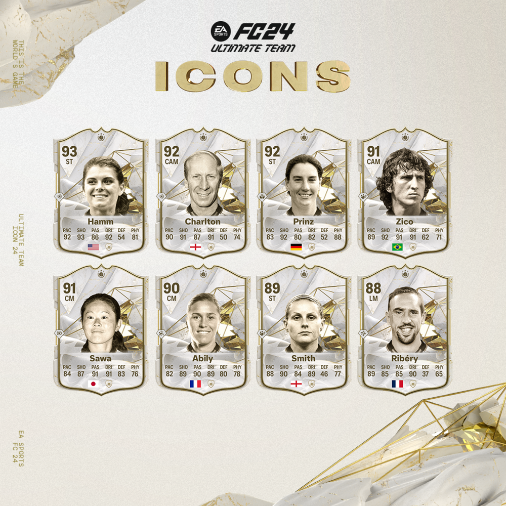 Zico’dan Mia Hamm’e, Homare Sawa’dan Kelly Smith’e, FC 24 İKONları efsaneleri tekrar hayata döndürmeye hazırlanıyor.